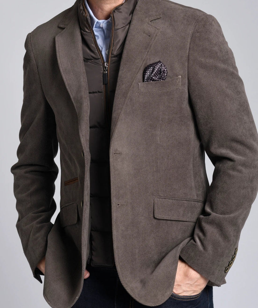 Pecherín interior, ideal para proteger del frío y el viento en los días más frescos. Se puede retirar con facilidad cuando no se necesita, convirtiendo la americana en una prenda versátil para distintas estaciones.