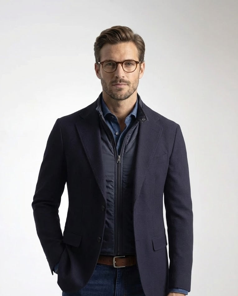 Luce un estilo relajado pero refinado con esta americana azul marino de la línea Casual Wear. Diseñada para destacar en ocasiones informales con un toque elegante, incorpora un corte slim fit que define la silueta sin perder comodidad.