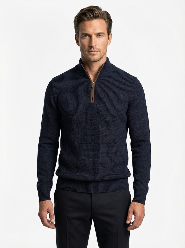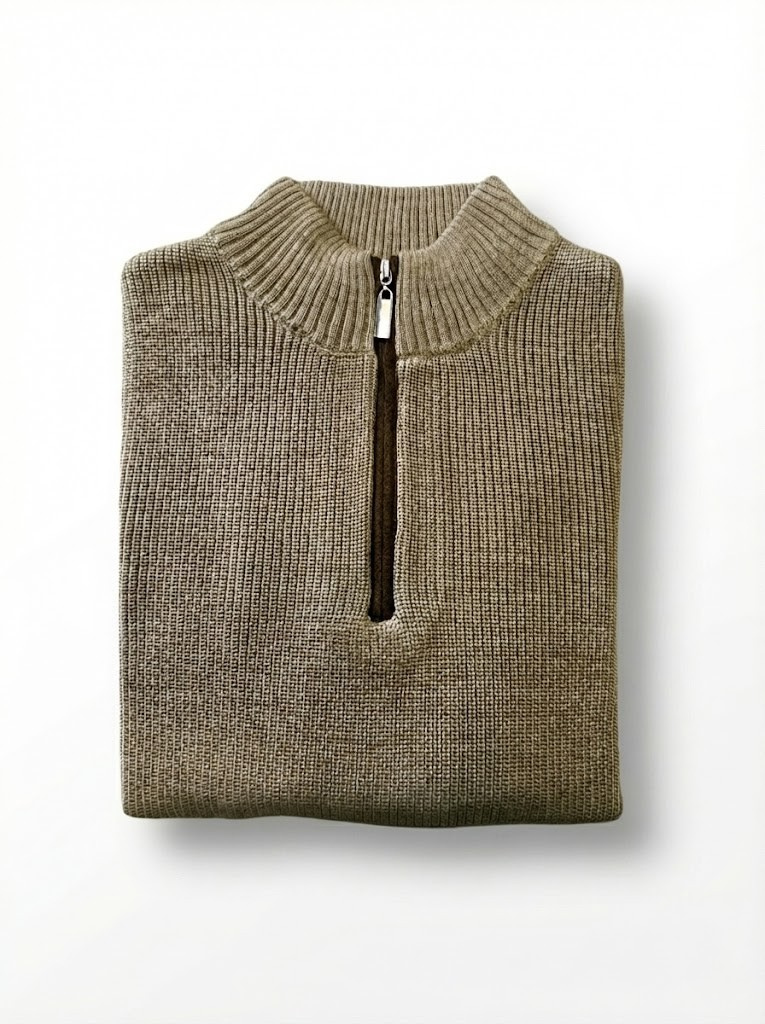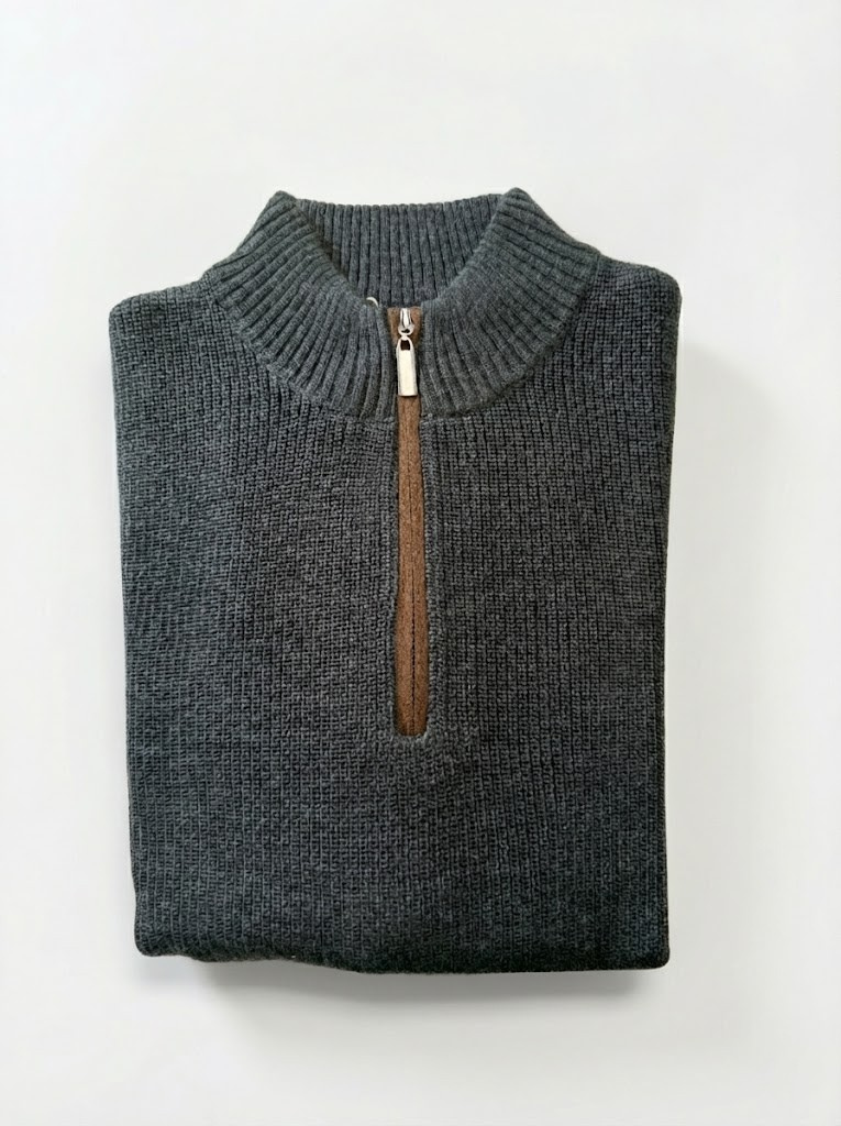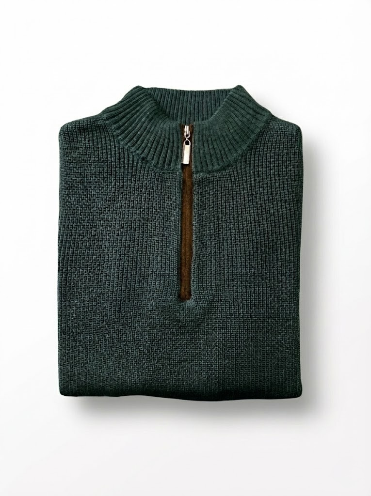 Un básico sofisticado que eleva cualquier look. Este jersey de punto presenta un diseño estructurado con textura acanalada y un cuello alto de canalé rematado con media cremallera metálica. Su corte clásico ofrece una silueta favorecedora sin renunciar a la comodidad.