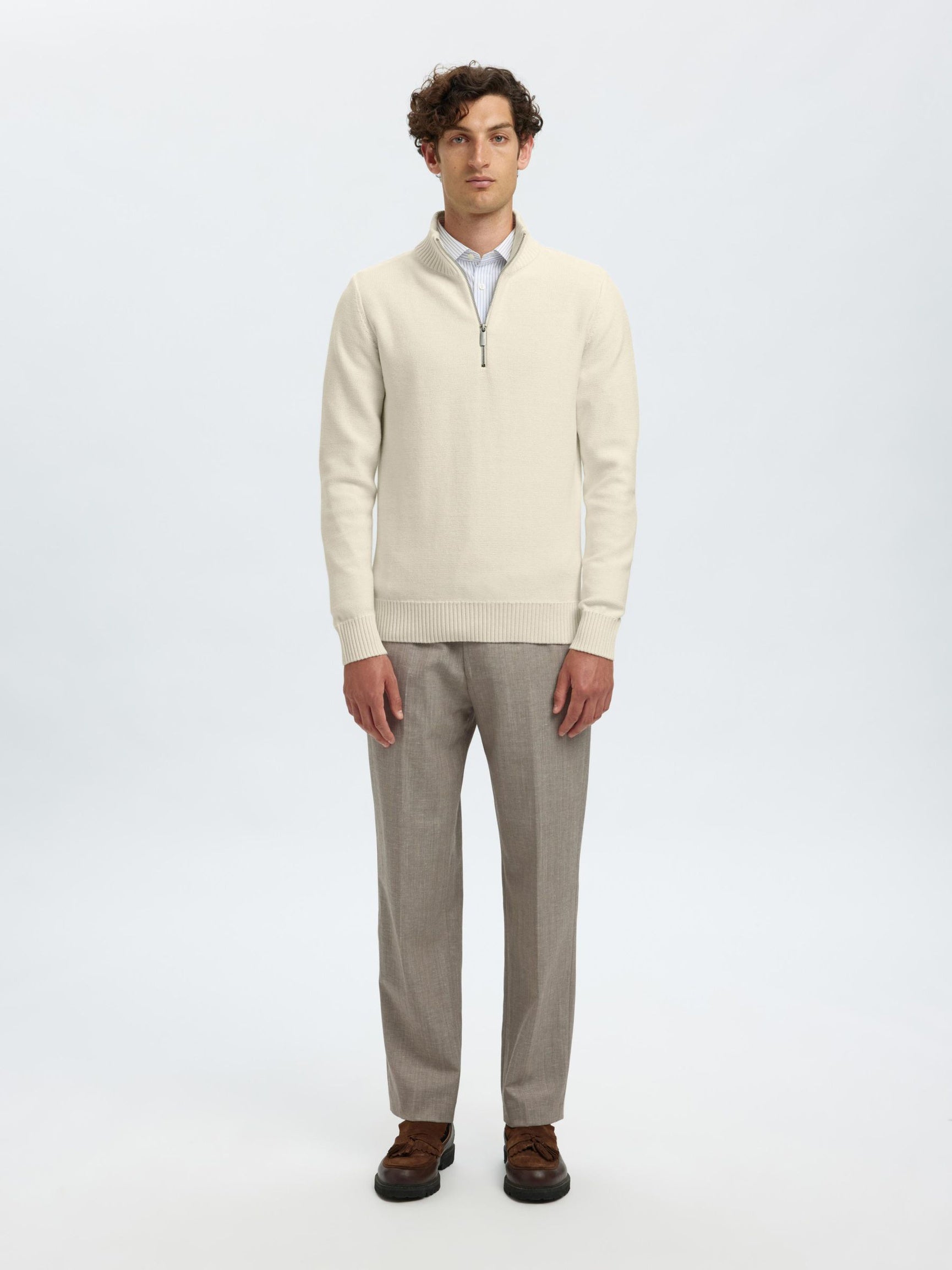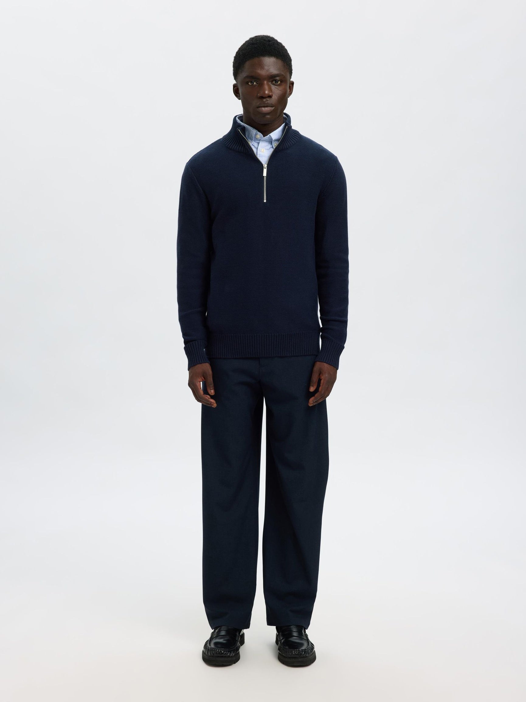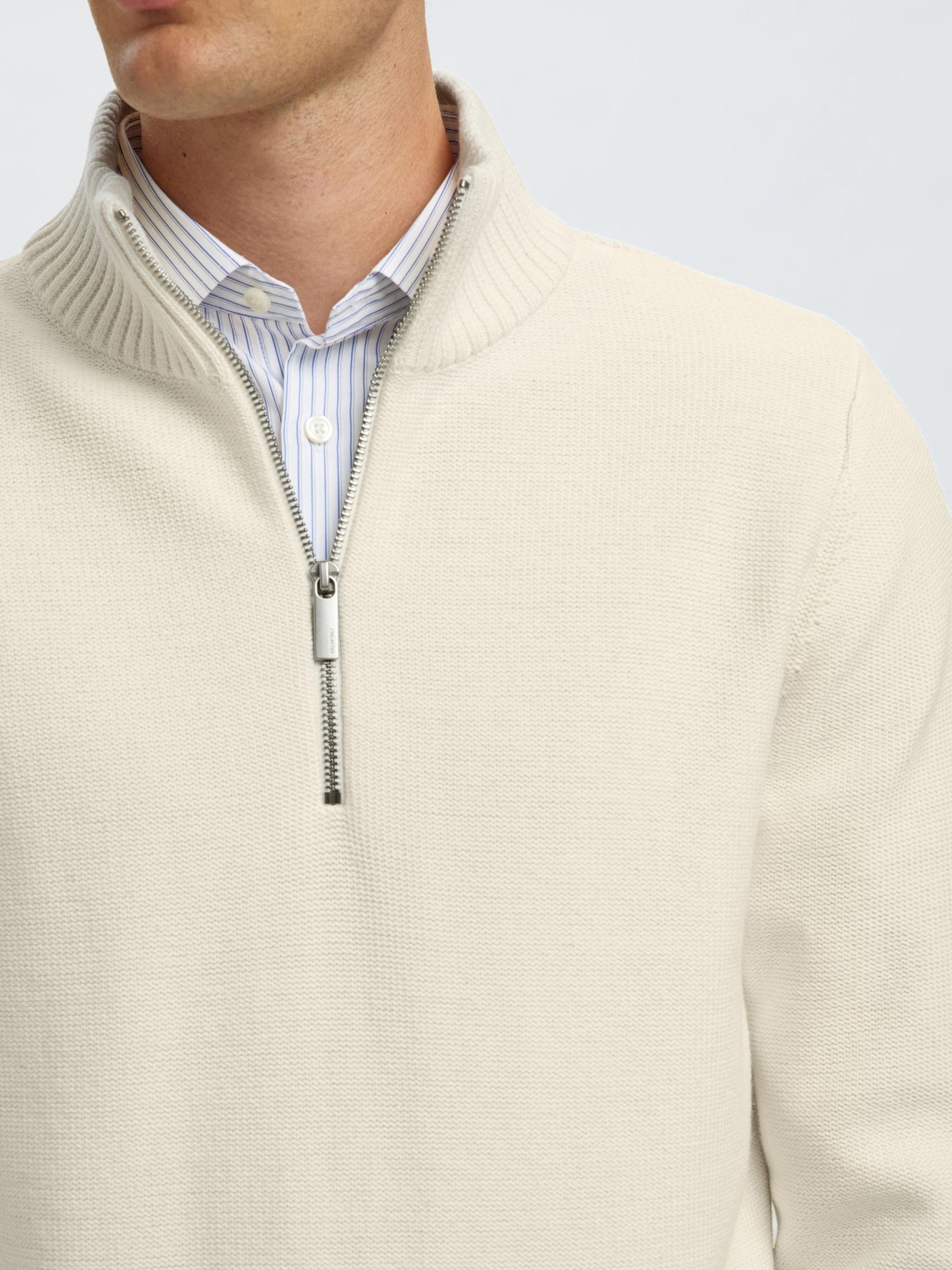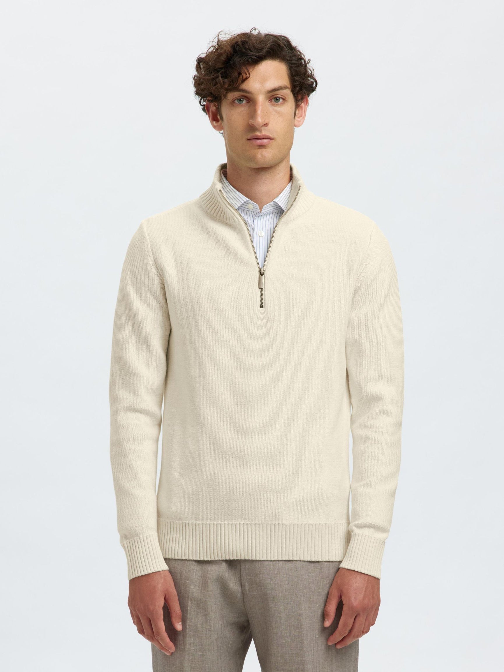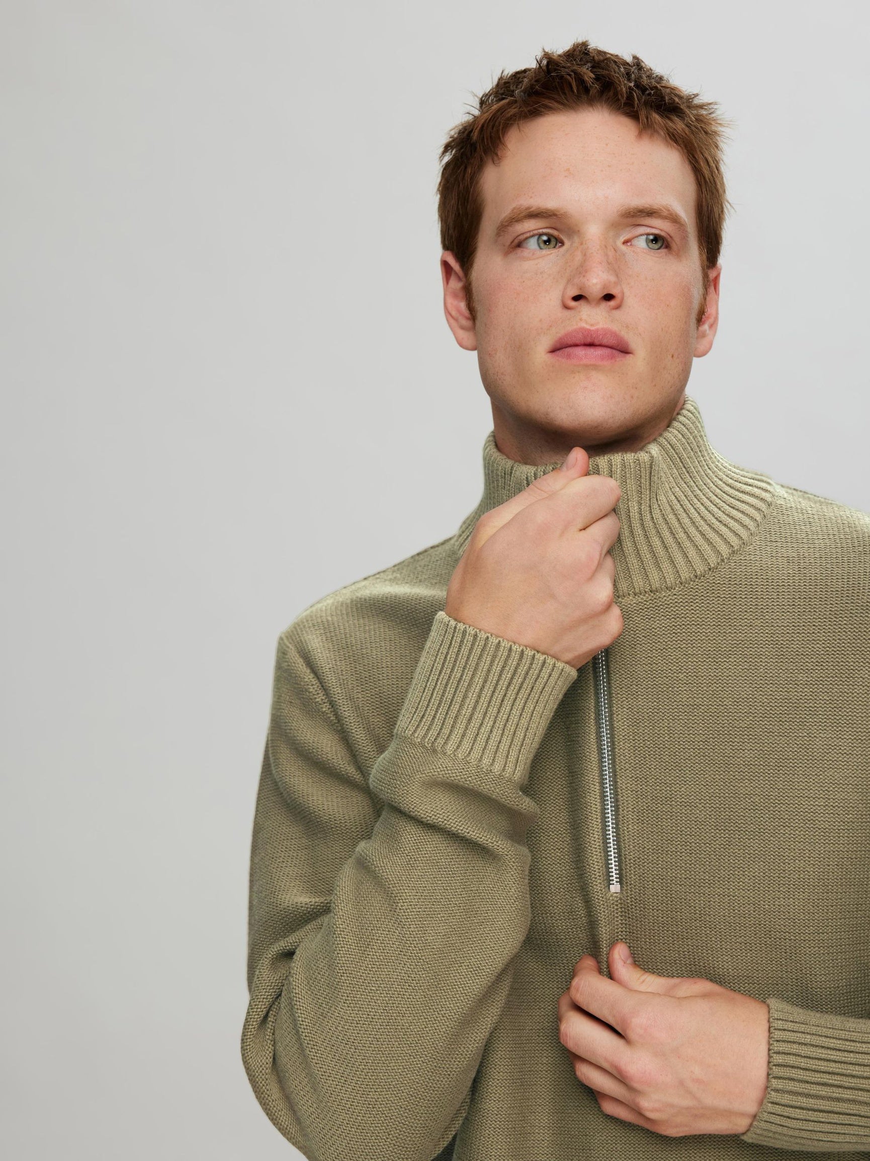 Renueva tu armario esta temporada con este jersey de punto para hombre con media cremallera, confeccionado en 100 % algodón. Su tejido es ligero, transpirable y resistente, lo que lo convierte en la opción ideal para los días frescos de otoño o primavera.