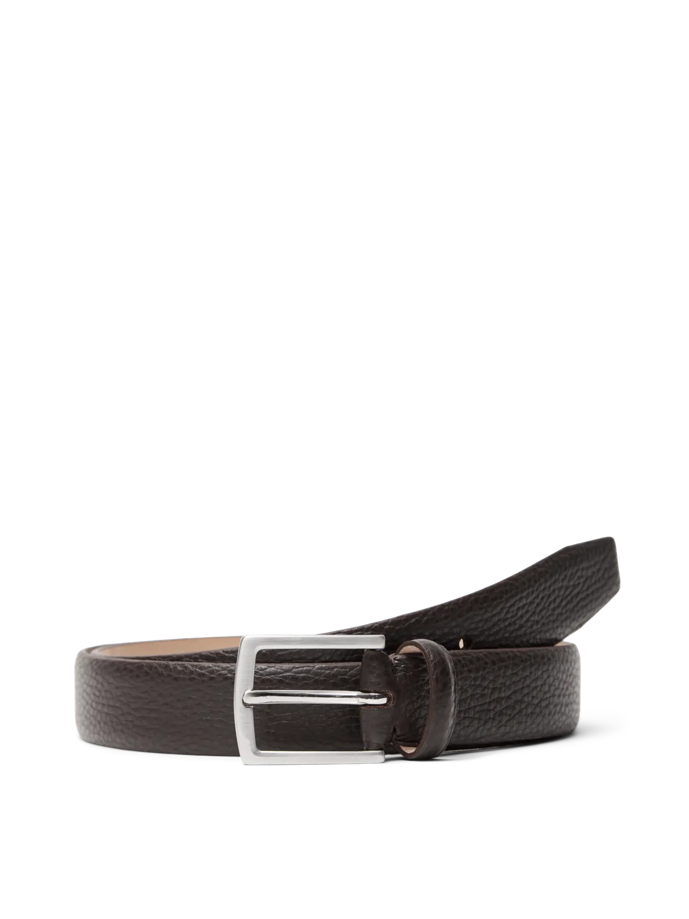 Este cinturón de cuero granulado para hombre es un básico imprescindible que aporta estilo, durabilidad y funcionalidad a cualquier conjunto. Su acabado texturizado le da un aspecto sofisticado, ideal tanto para looks casuales como más formales.