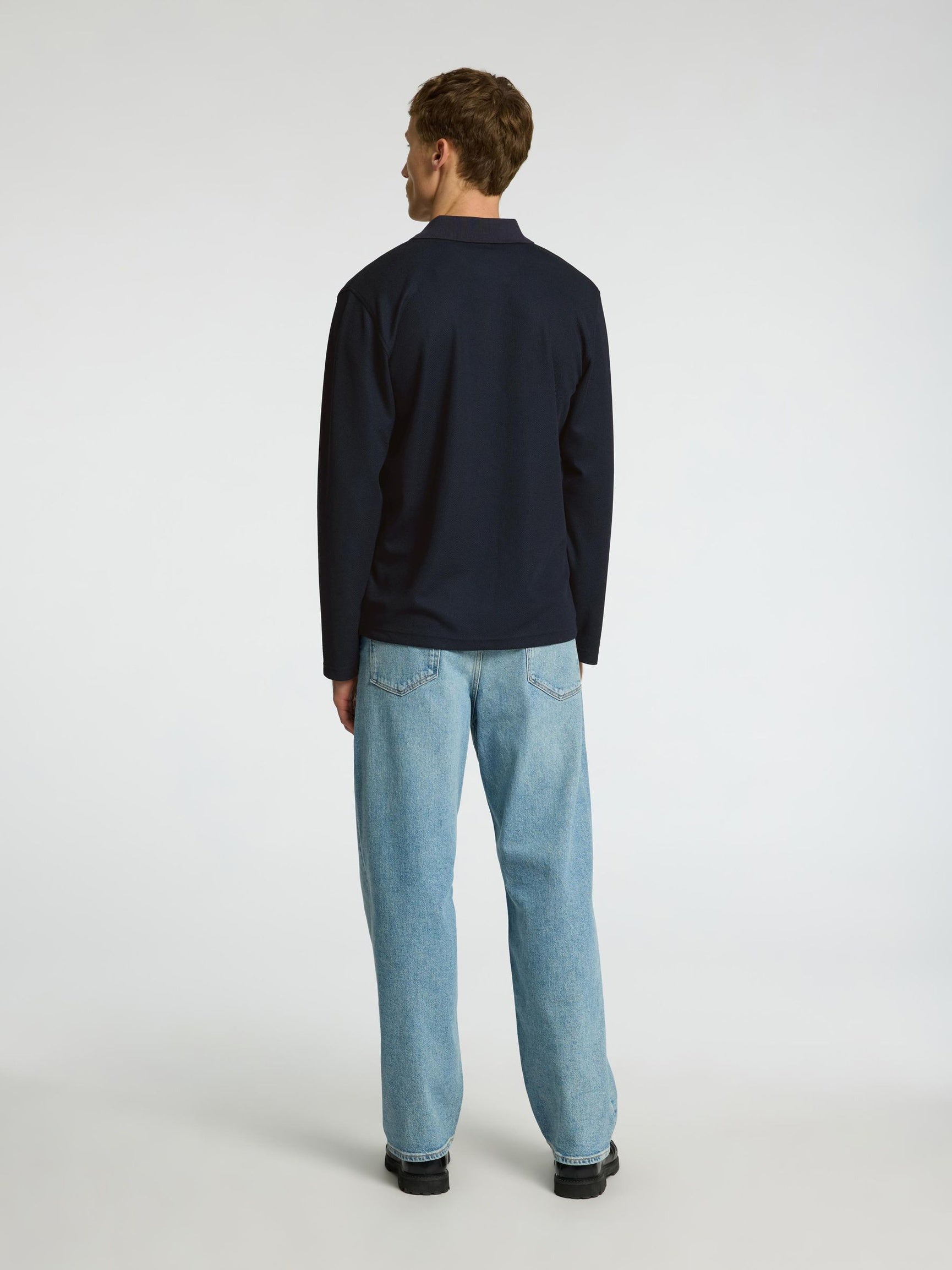 Este polo de manga larga es la prenda perfecta para elevar tu estilo diario con un toque moderno. Su diseño incluye cuello polo abierto y ribetes pespunteados que aportan un acabado más sofisticado, sin perder comodidad.