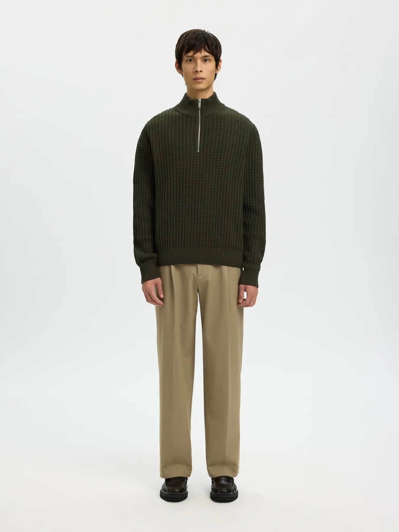 Aporta estilo y confort a tu armario diario con este jersey de punto para hombre, una prenda pensada para combinar con facilidad en cualquier temporada. Su diseño de cuello alto con cremallera parcial proporciona un look actual y funcional, ideal para climas frescos.