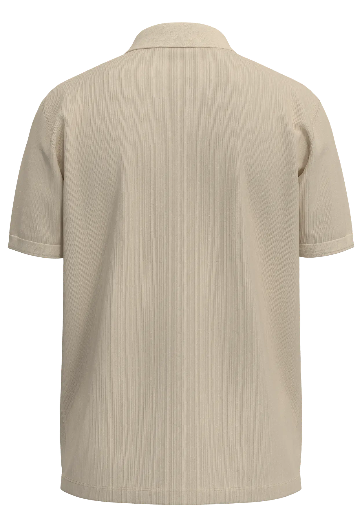 Gracias a su tradicional cuello estilo polo y sus prácticas mangas cortas, obtendrás un diseño clásico que nunca falla. Su corte regular fit garantiza un ajuste favorecedor, equilibrado y con total libertad de movimiento para afrontar tu rutina. Para un conjunto refinado y sin esfuerzo, combínalo con unos pantalones chinos de sastre y unos mocasines de ante.